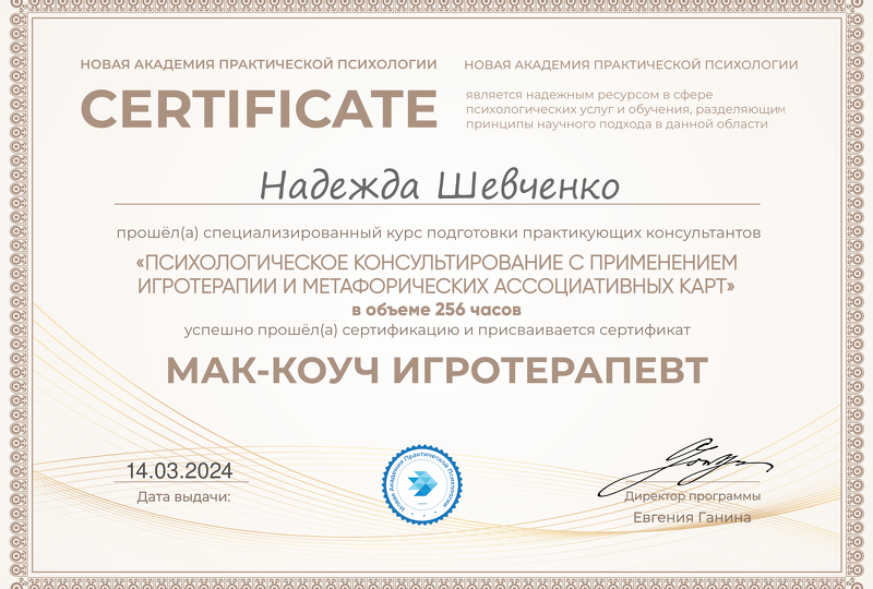 Надежда, спасибо за работу. Чувствуется, что градус тревог снизился. Мы проговорили опасения и страхи и подсветили их МАК картами. Карты ресурсные выпали жизненные, актуальные. Решения пришли выполнимые. Всё возможно, всё в моих руках. Спасибо. Благодаря Вашему чуткому ведению удалось присмотреться к отношениям с ребенком.