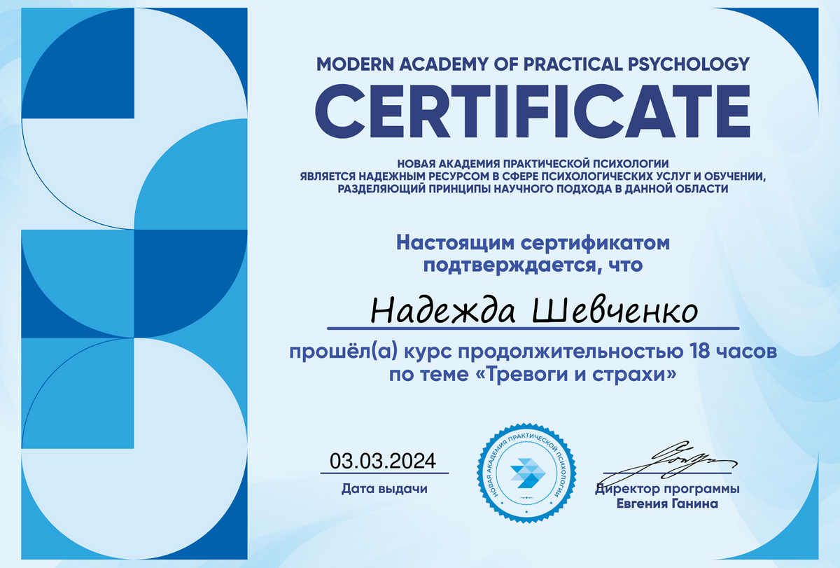 Я очень благодарен за проведенную консультацию. Сессия помогла проработать глубокую установку, которая влияла на мою жизнь с самого детства и определить, каким образом в дальнейшем можно справляться с ситуациями, влияющими на мою самооценку.